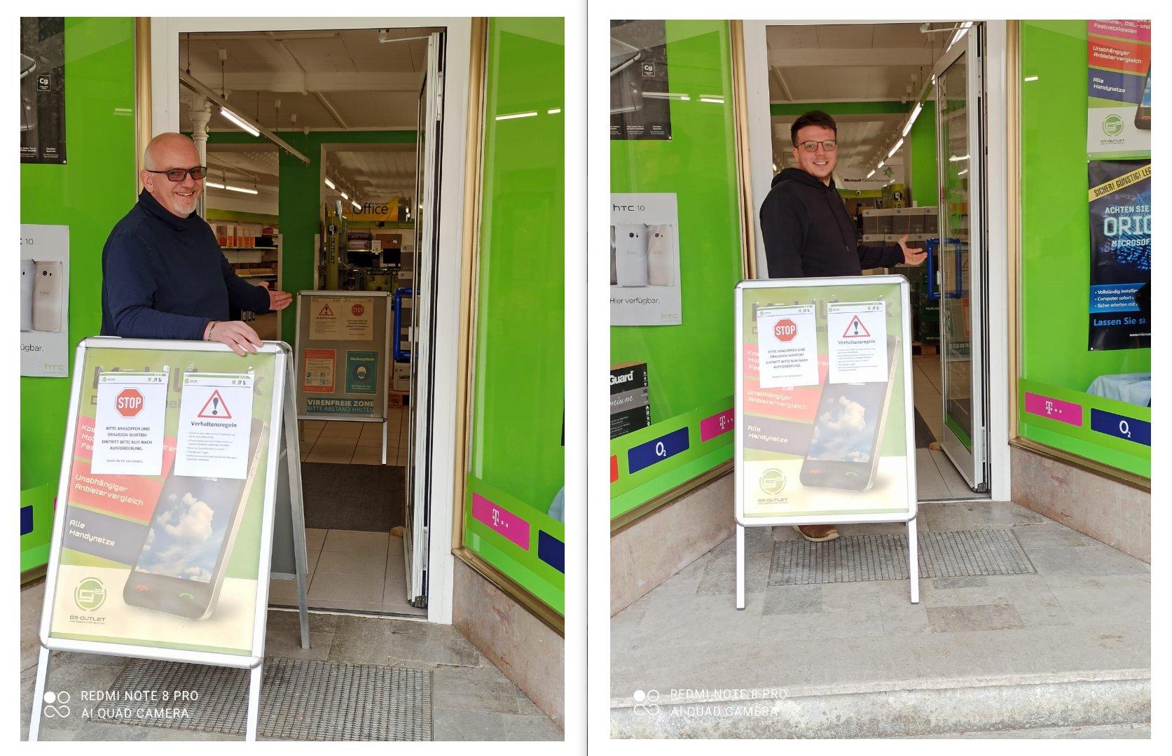 - Menschenansammlungen und Warteschlangen unbedingt vermeiden. Sollte zum Zeitpunkt ihres Termins ein anderer Kunde vor dem Laden stehen bitten wir ausreichend Abstand zu halten und sich dem Laden erst zu nähern, wenn alle anderen Kunden weg sind.